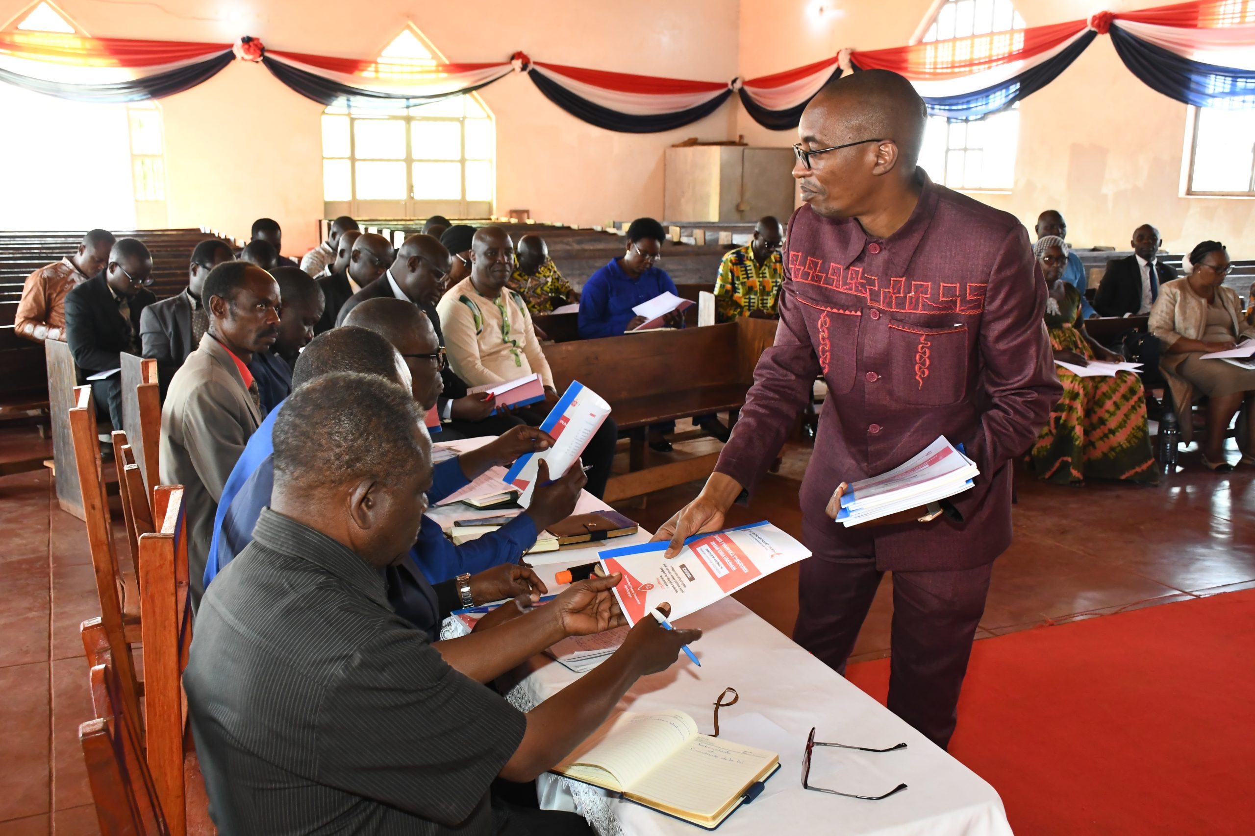 The conference secretary, Reverend NIYIRAGIRA Ladislas, presented the agenda for conducting the executive committee meeting. Among the main points scheduled for the meeting were, the agenda of annual conference session to be held from 6 to 9 August, a theological university set up project, reconciliation of the law with the current regulations of religious denominations leadership, funds apportionment at different levels.